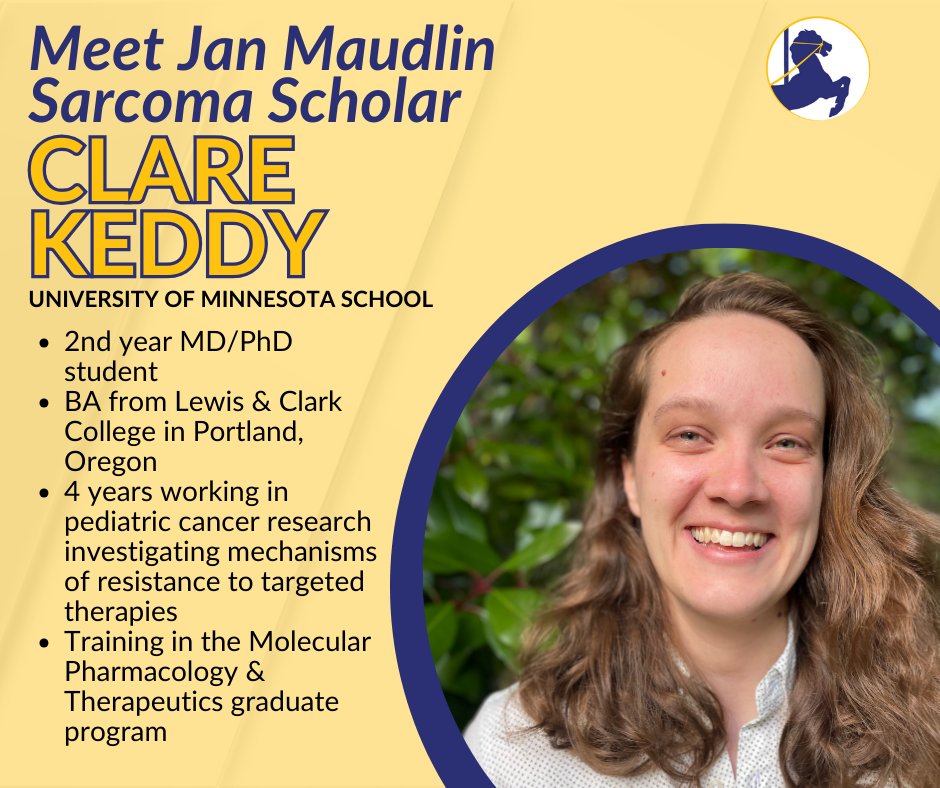 We are excited to announce we have a record number of Jan Maudlin Sarcoma Scholars for the 2024-2025 year. We have selected 13 medical school and advanced practice students! The Jan Maudlin Scholars Program awards annual scholarships for medical and advanced practice students to support Rein in Sarcoma’s mission with the goal of educating the medical community and public about sarcoma cancers. Thanks to the generosity of Jan and Tim Maudlin, each year new scholarships are granted. This month we would like to share more information the scholars. It’s time to meet Clare, Harper and William, medical students from the University of Minnesota Medical School.
